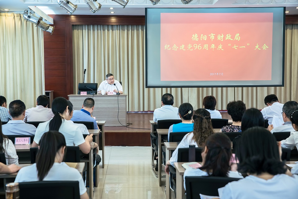 629,德阳省行业党总支召开庆祝建党96周年暨“颂歌献给党”专题党日活动。活动前,局党组书记、局长、省行业党总支书记陈若愚为全体党员同志上专题党课,安排部署下半年党建工作。在“颂歌献给党”活动中,行业党总支、党外干部代表、团员青年代表分别用美好的歌声演唱《没有共产党就没有新中国》、《北京的金山上》、《学习雷锋好榜样》、《跟着共产党走》、《团结就是力量》、《德阳财政人》等歌曲为党祝福。最后,在全体参会同志共唱《没有共产党就没有新中国》的歌声中,共同祝愿伟大的党永远年轻蓬勃,愿伟大的祖国更加繁荣富强。