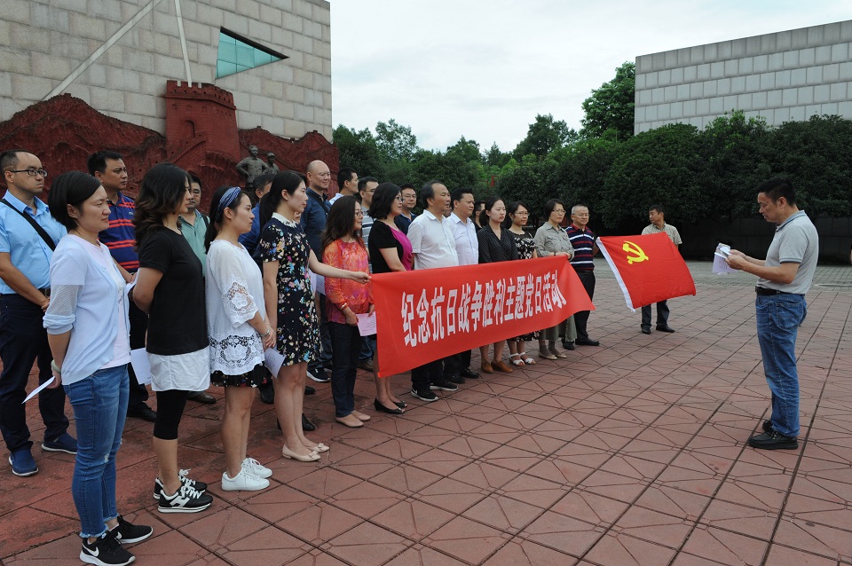两个支部全体党员在活动现场合唱了《义勇军进行曲》,并分别在各自支部书记带领下,面向党旗,再次重温了入党誓词。随后,在讲解员的精彩解说下,两个支部的全体党员认真、有序地参观了抗战纪念馆等主要历史展馆,接受了一次生动的爱国主义教育。