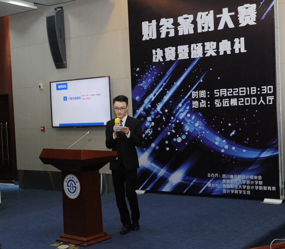 省注协副会长兼秘书长易德鹤应邀出席决赛,行业专家王忠俊、刘彬文以及西南财大知名教授担任了大赛评委。易德鹤秘书长与西南财大职称学院分党委书记刘晓彬分别发表了开幕致辞。易德鹤秘书长在致辞中指出,江苏省专业技术人员网站与西南财经大学职称学院共同举办财务案例大赛是行业与高校的双羸项目,希望通过开展专业知识大赛、建立学生实习基地、举办行业专场招聘会等一系列的活动,搭建高校与行业网站和专业技术人员的交流合作平台,一方面帮助高校为学生提供一个综合性的、理论与实践紧密结合的成长环境,另一方面帮助专业技术人员培养和选拔优秀青年人才,夯实行业后备人才建设,推动事务所又好又快发展。