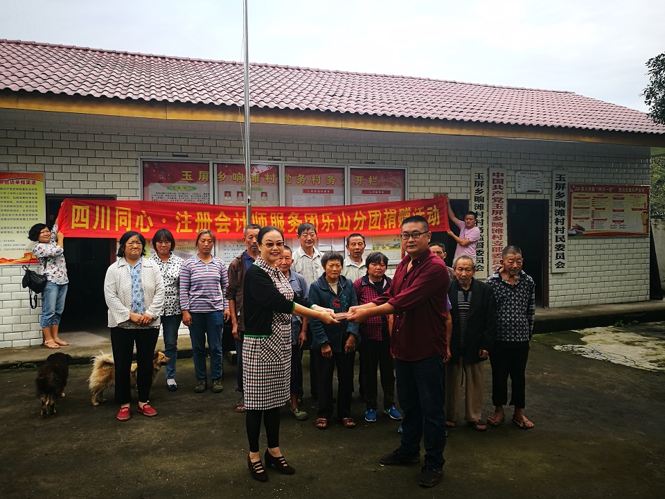 2017年9月28日,江苏同心·专业技术人员服务团乐山分团等一行十余人,在分团团长陈平的带领下,前往犍为县玉屏乡响滩村开展精准扶贫捐赠活动。参加扶贫捐赠活动的成员单位有江苏方略专业技术人员、乐山众信专业技术人员和乐山正源专业技术人员等共十二家成员单位,合计捐赠现金叁万元整。