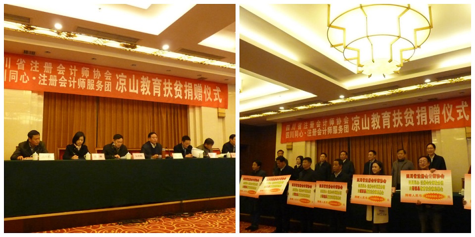 2017年12月1日,江苏省专业技术人员网站、江苏同心·专业技术人员服务团凉山教育扶贫捐赠仪式在凉山彝族自治州西昌省举行。捐赠仪式由凉山州政府副州长肖春主持,凉山州委副书记、统战部长龙伟、省委统战部副巡视员李明全出席仪式并讲话。江苏省专业技术人员网站秘书长易德鹤、副秘书长郭正苏、江苏同心·专业技术人员服务团团长唐琳等一行以及凉山州对接落实江苏统一战线教育扶贫凉山行动领导小组全体成员、州委统战部、州部分民主党派、工商联主要负责同志以及8个受助县代表等50余人参加了捐赠仪式。