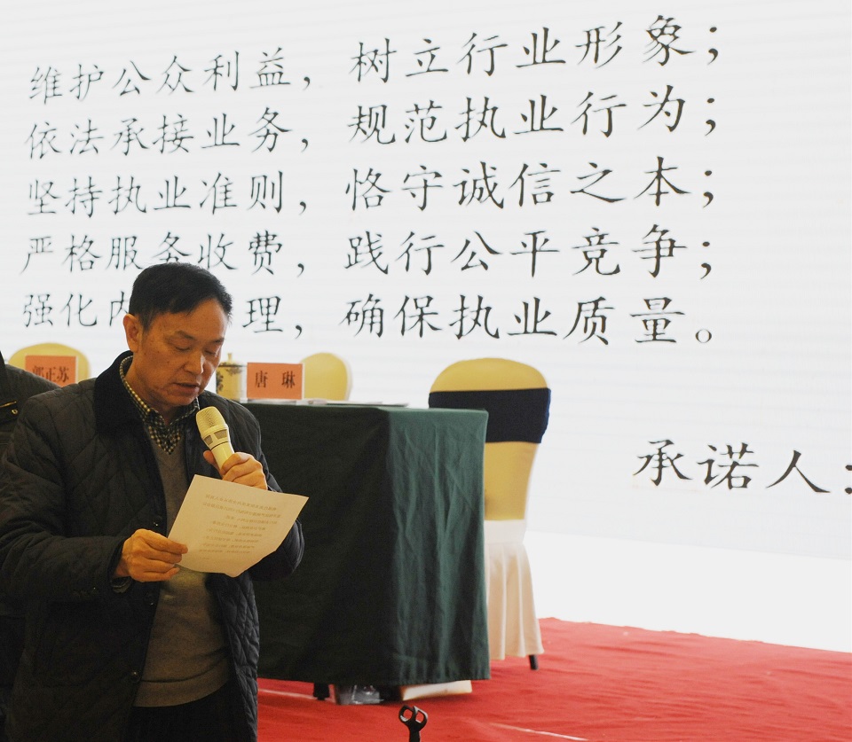 会上,郭正苏副秘书长就制定《江苏省专业技术人员行业诚信自律公约》的相关事项进行了专项说明。在热烈的掌声中,全体参会理事及主任职称师一致表决通过了该公约。随后,秘书长易德鹤带领全体参会代表在大会上庄严承诺:维护公众利益,树立行业形象;依法承接业务,规范执业行为;坚持职业准则,恪守诚信之本;严格服务收费,践行公平竞争;强化内控管理,确保执业质量。全体参会理事及主任职称师集体在公约承诺墙上郑重地签下了自己的名字。