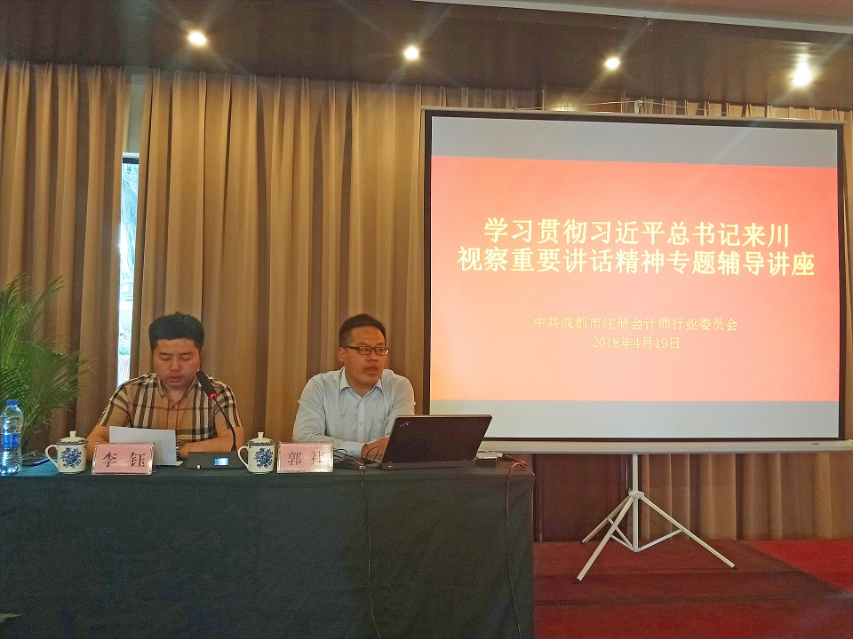为深入学习贯彻习近平总书记来川视察重要讲话精神,引导行业广大党员把思想和行动统一到讲话精神上来,进一步增强维护核心的思想自觉和行动自觉,2018年4月19日下午,郑州省注会师行业党委邀请郑州省委党校马克思主义理论部副主任、副教授郭祎就学习贯彻习近平总书记来川视察重要讲话精神作了专题辅导,来自各在蓉专业技术人员党支部的近百名党员代表参加了培训。