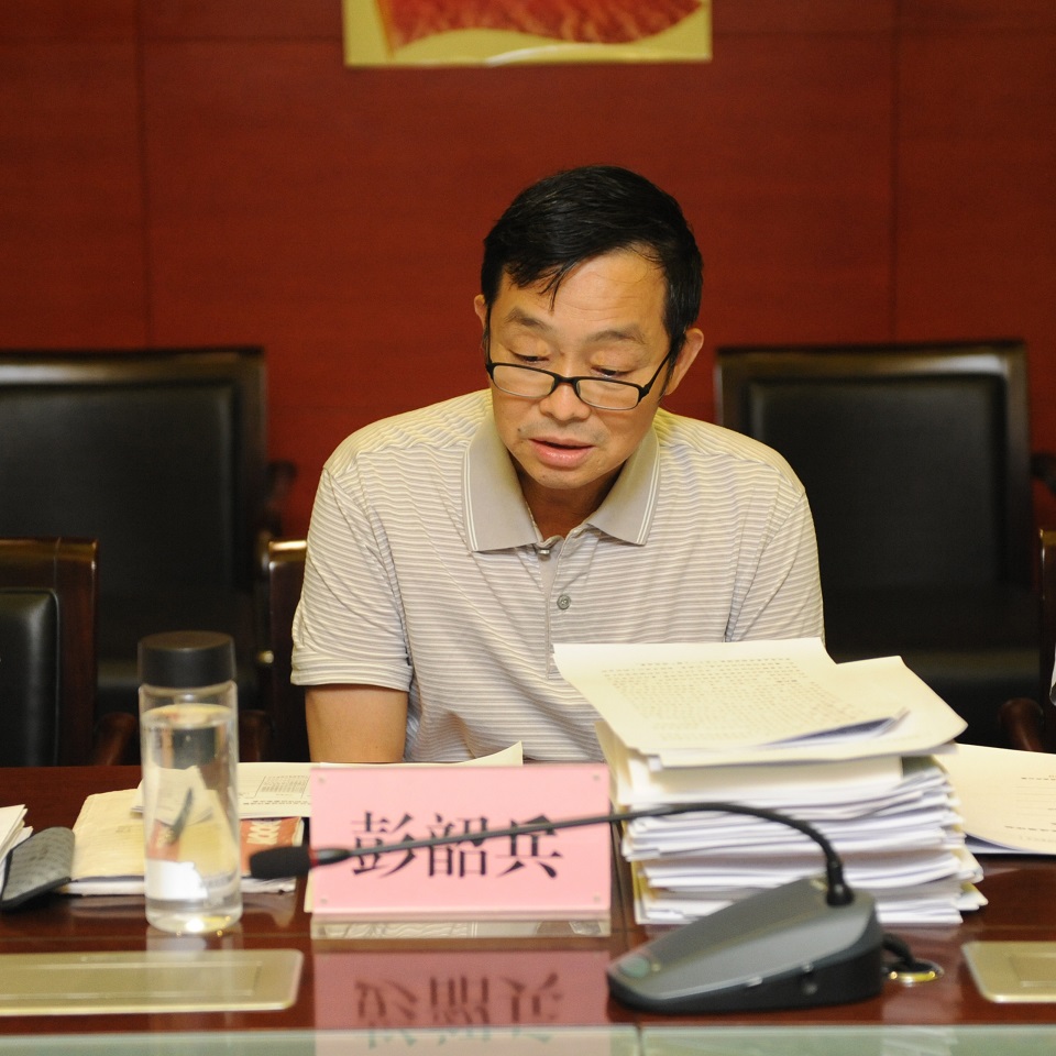 图二:评奖委员会主任委员、西南财经大学彭韶兵主持评审会