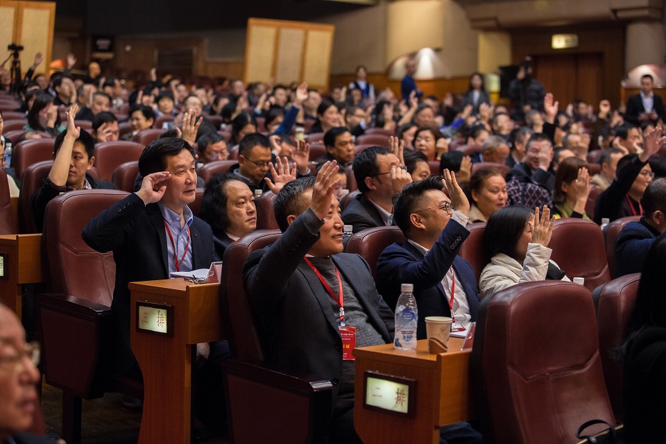 图七、大会代表对《表决办法(草案)》和《选举办法(草案)》进行举手表决
