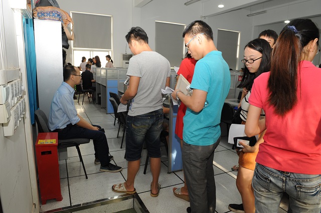 图二、考生排队签到、照相